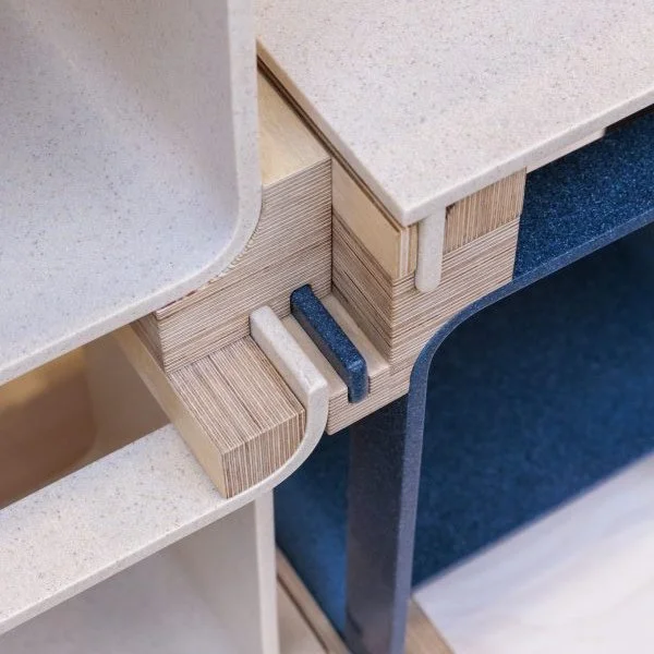 Nexus is een revolutionair modulair kastensysteem dat moderne idealen van duurzaamheid en aanpasbaarheid belichaamt. Gemaakt van gebogen composietdelen…